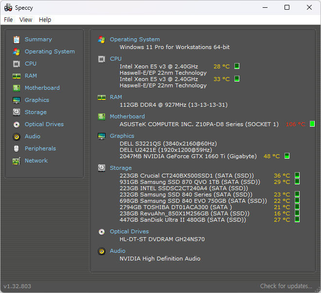 필자가 2010년부터 애용하고 있는 Speccy라는 무료 프로그램이 있습니다. 아래 링크에서 다운로드할 수 있습니다.