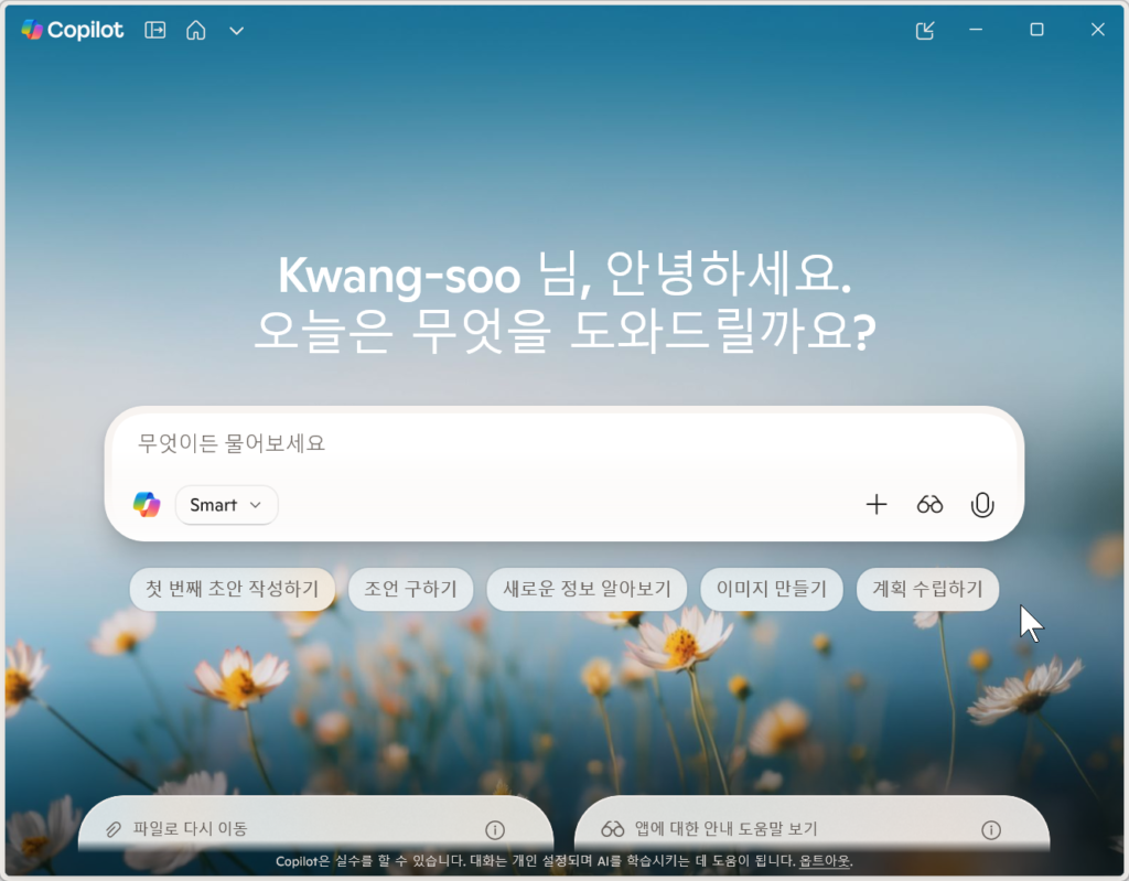 Copilot은 단순한 챗봇이 아니라, 검색·문서 작성·업무 정리·아이디어 생성까지 도와주는 종합 AI 도우미입니다. Windows 11을 사용 중이라면, 무료 Copilot부터 먼저 사용해 보시고 필요하다면 Pro나 Microsoft 365 Copilot으로 확장해 보세요.